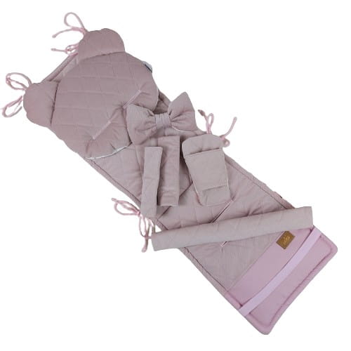 - posiada troczki do mocowania jako dodatkowe zabezpieczenie przed przemieszczaniem się wkładki w wózku - umiejscowione u góry, z boku lub w otworach na pasy (w zależności od modelu wózka)