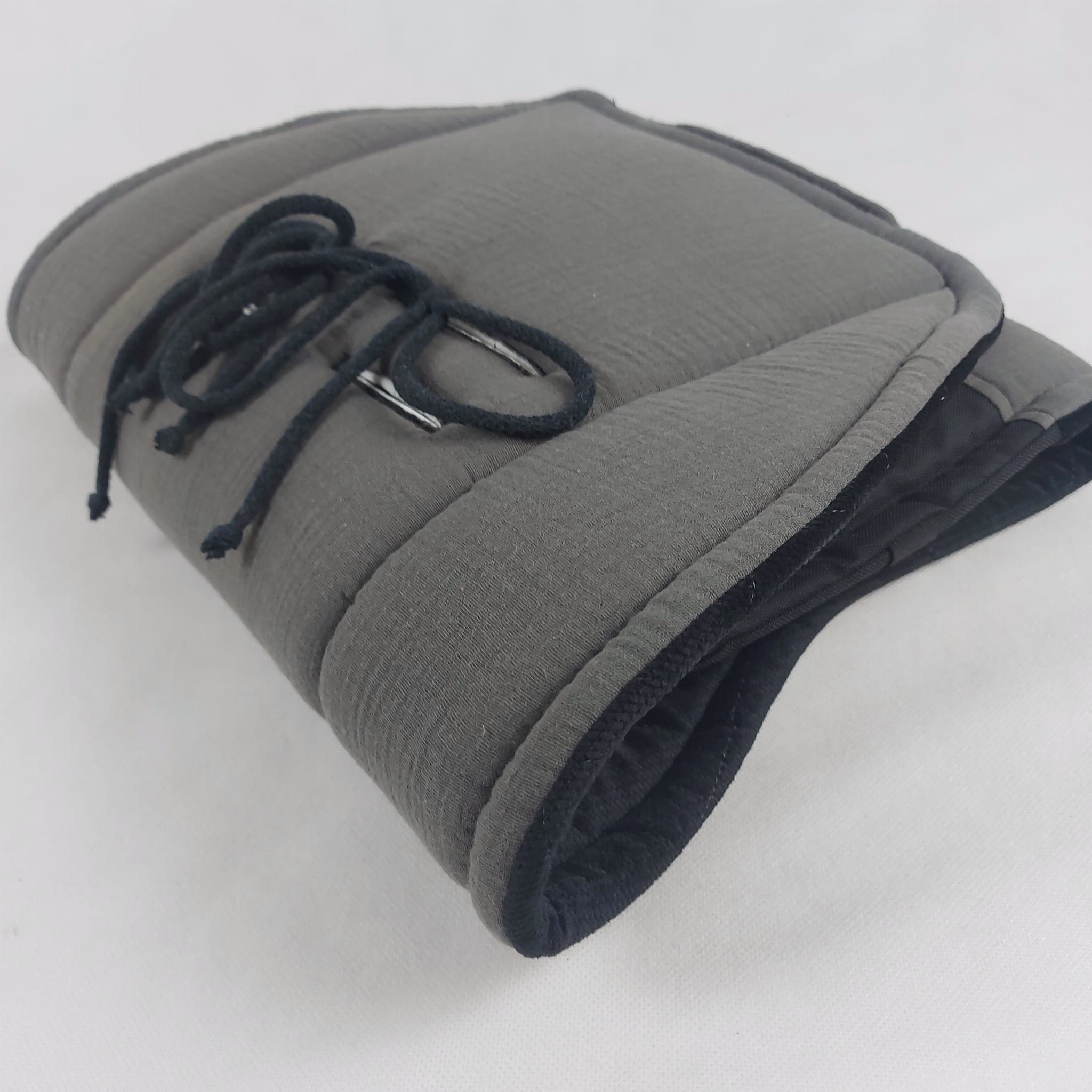 - po środku podnóżka wszyta gumka do zamocowania pod podnóżkiem lub pod dolną częścią wózka (w przypadku wózków bez ruchomych podnóżków)