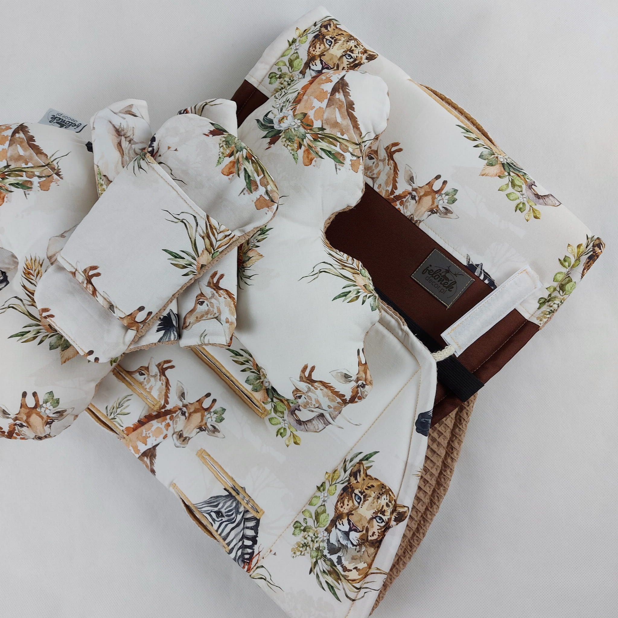 - posiada troczki do mocowania jako dodatkowe zabezpieczenie przed przemieszczaniem się wkładki w wózku - umiejscowione u góry, z boku lub w otworach na pasy (w zależności od modelu wózka)