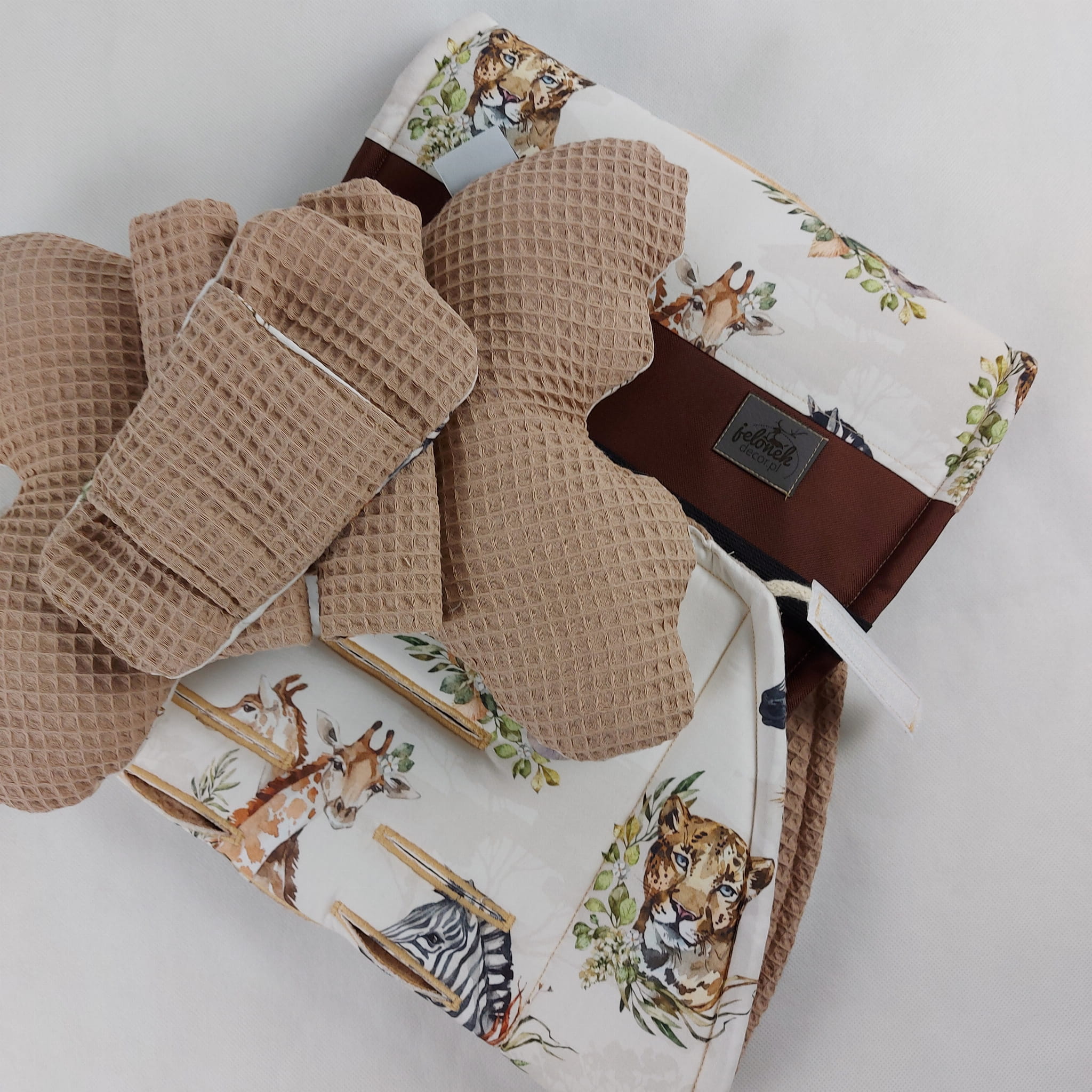 Tkaniny, z których szyjemy produkty, są barwione barwnikami naturalnymi, atestowanymi. Dzięki temu nie powodują podrażnień. Naturalne barwniki wystawione na długotrwałą ekspozycję słoneczną mogą bladnąć. Nie zalecamy także suszenia naszych produktów w słońcu.